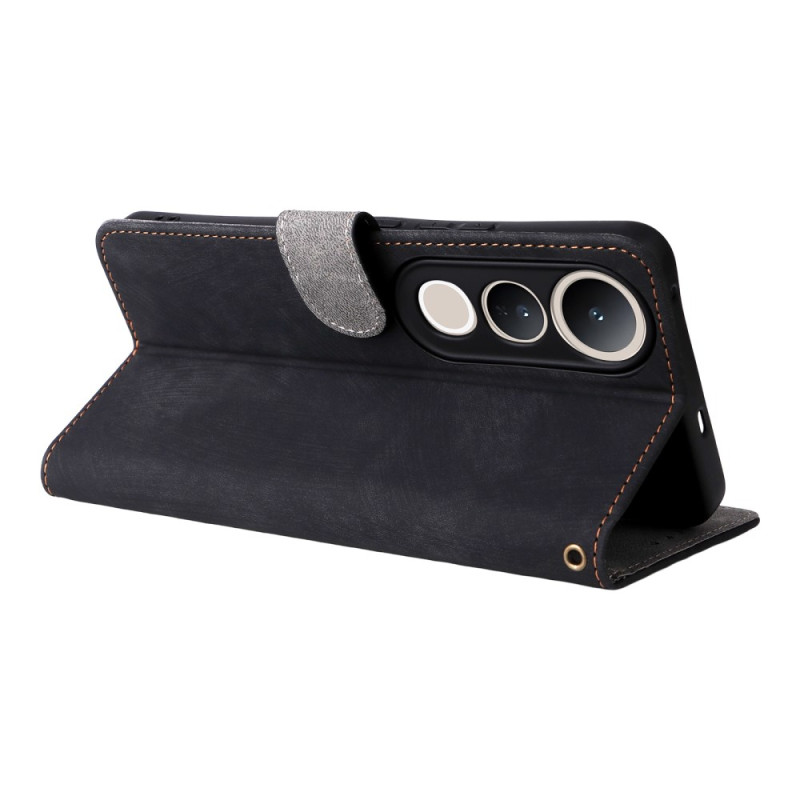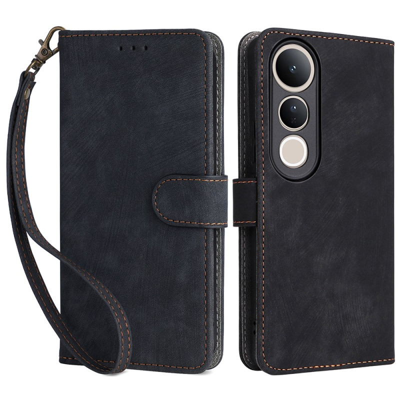 Étui portefeuille en cuir PU premium pour Vivo V50 Lite avec protection RFID, 3 emplacements cartes, support de visionnage intégré et fermeture magnétique. Protection complète contre les chocs quotidiens avec dragonne incluse pour un transport facile.