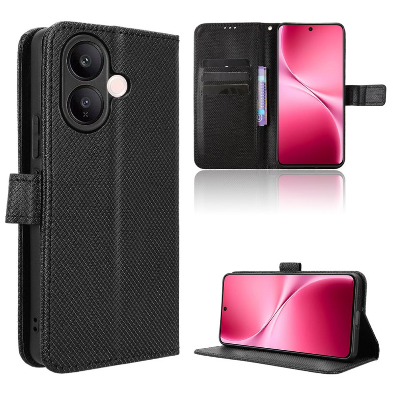 Découvrez cet élégant étui portefeuille avec texture diamant pour votre vivo V60 Lite 5G. Doté de compartiments pour cartes, d'une poche pour espèces et d'une dragonne pratique, il allie style et fonctionnalité pour protéger votre téléphone au quotidien.