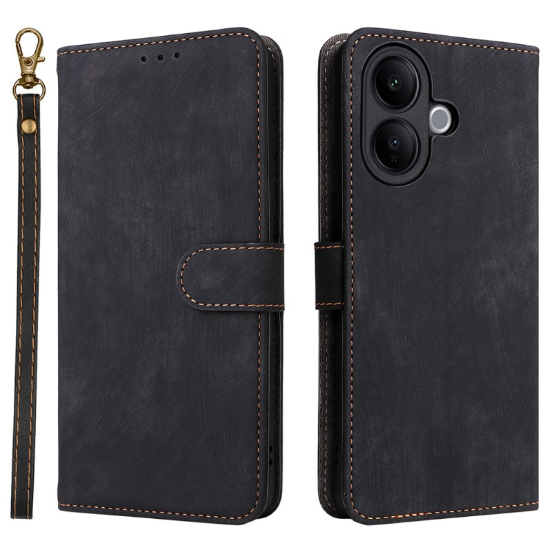 Étui portefeuille multifonction en cuir PU pour Vivo V60 Lite 5G. Protection RFID intégrée, 3 emplacements cartes, support mains-libres et fermeture magnétique. Alliez style, sécurité et praticité au quotidien avec dragonne incluse.