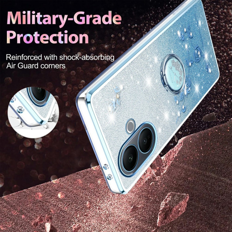 Protégez votre Vivo V60 Lite avec élégance grâce à cette coque scintillante ornée de fleurs éternelles et strass. Son anneau rotatif intégré permet un visionnage mains libres et une meilleure prise en main pour un usage quotidien optimal.