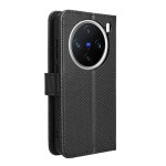 Découvrez cet élégant étui portefeuille pour Vivo X200 5G. Doté d'une texture diamant sophistiquée, il combine style et fonctionnalité avec ses emplacements pour cartes, sa fermeture magnétique et son support pliable intégré pour une expérience mains libres.