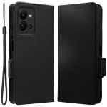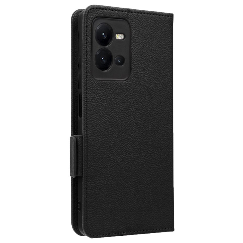 Étui portefeuille élégant avec texture litchi pour Vivo X80 Lite. Doté d'une fermeture magnétique double, d'un support mains libres et de multiples rangements pour cartes. Comprend une dragonne pratique pour un transport sécurisé.