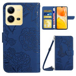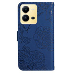 Étui portefeuille élégant avec motif papillons et fleurs en relief pour Vivo X80 Lite 5G. Protection intégrale antichoc, support ajustable, compartiments pour cartes et bandoulière incluse. Fermeture magnétique sécurisée.