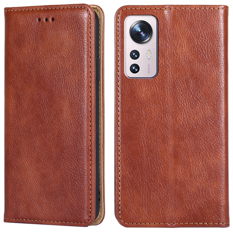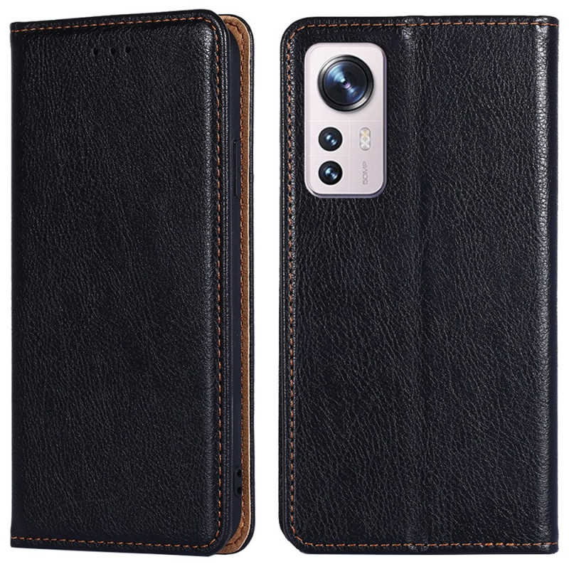 La housse de style flip cover pour Xiaomi 12 Pro, en simili cuir avec coutures, donne une protection optimale au portable.