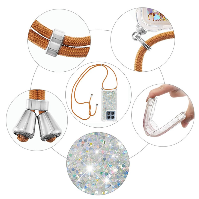 Son design à paillettes flottantes crée un effet fascinant, tandis que son rebord surélevé protège l'appareil photo.