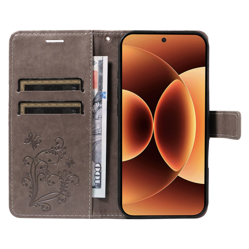 Cet étui élégant en cuir PU de qualité supérieure offre une protection robuste pour votre Xiaomi 17 Pro Max. Avec son motif de papillons imprimé, ses deux fentes pour cartes, son compartiment pour billets et sa fonction de support, il allie praticité et style. La dragonne incluse assure une portabilité accrue.