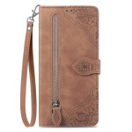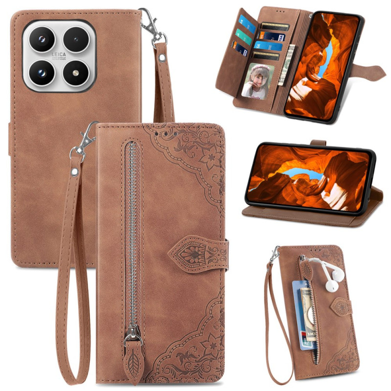 Étui portefeuille élégant en cuir PU avec motif floral raffiné. Conception multifonctionnelle avec compartiments pour cartes, poche zippée extérieure, support de visionnage intégré et dragonne pratique. Protection complète contre les rayures et les chutes.