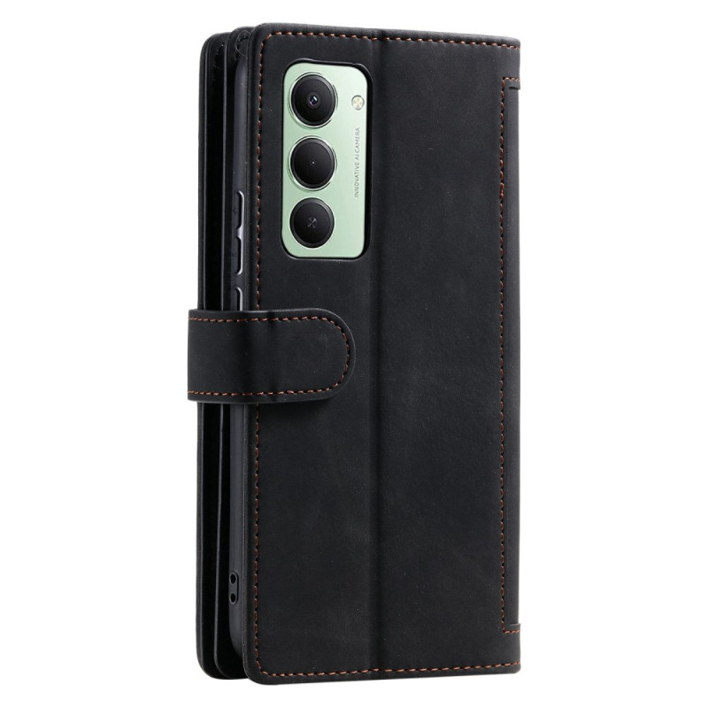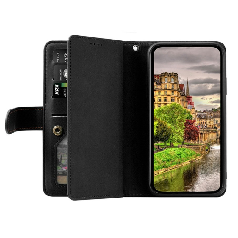 Coque portefeuille en cuir PU pour Xiaomi Redmi 15 avec 9 emplacements pour cartes, fermeture éclair et dragonne. Fonctionnalité support intégrée pour un visionnage mains libres. Protection complète avec fermeture magnétique et intérieur en TPU. Parfait pour ranger cartes, monnaie et billets en toute sécurité.