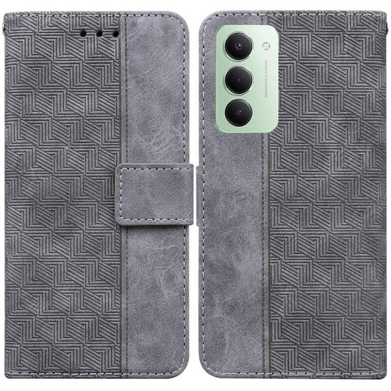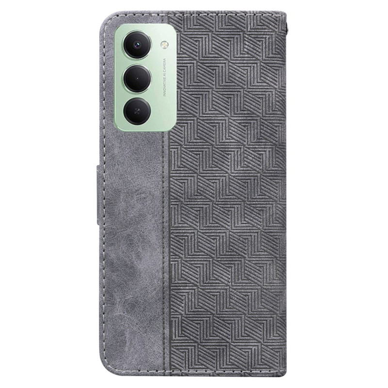 Élégante coque portefeuille en cuir PU avec motif géométrique pour Xiaomi Redmi 15 4G. Offre une protection robuste, des fentes pour cartes, un compartiment pour billets et une fonction support. Comprend une dragonne pour plus de sécurité et de portabilité.
