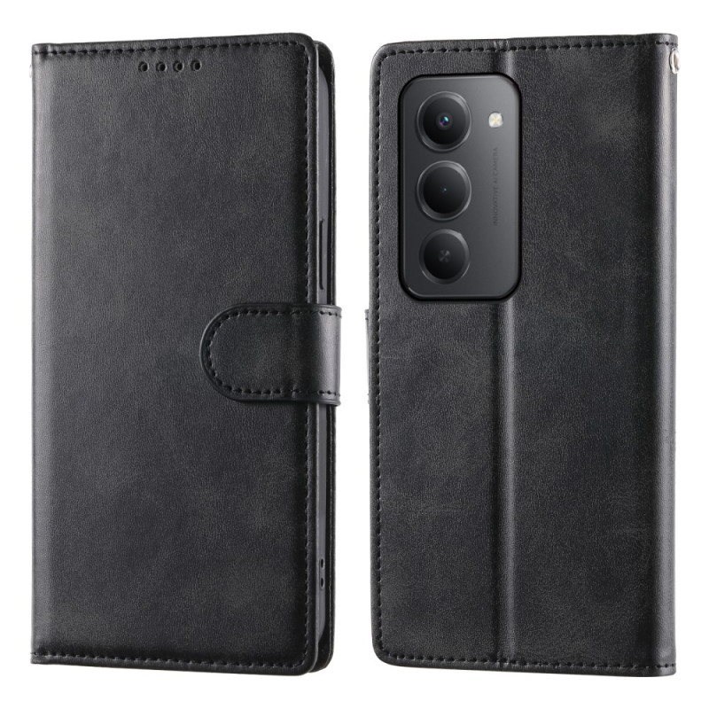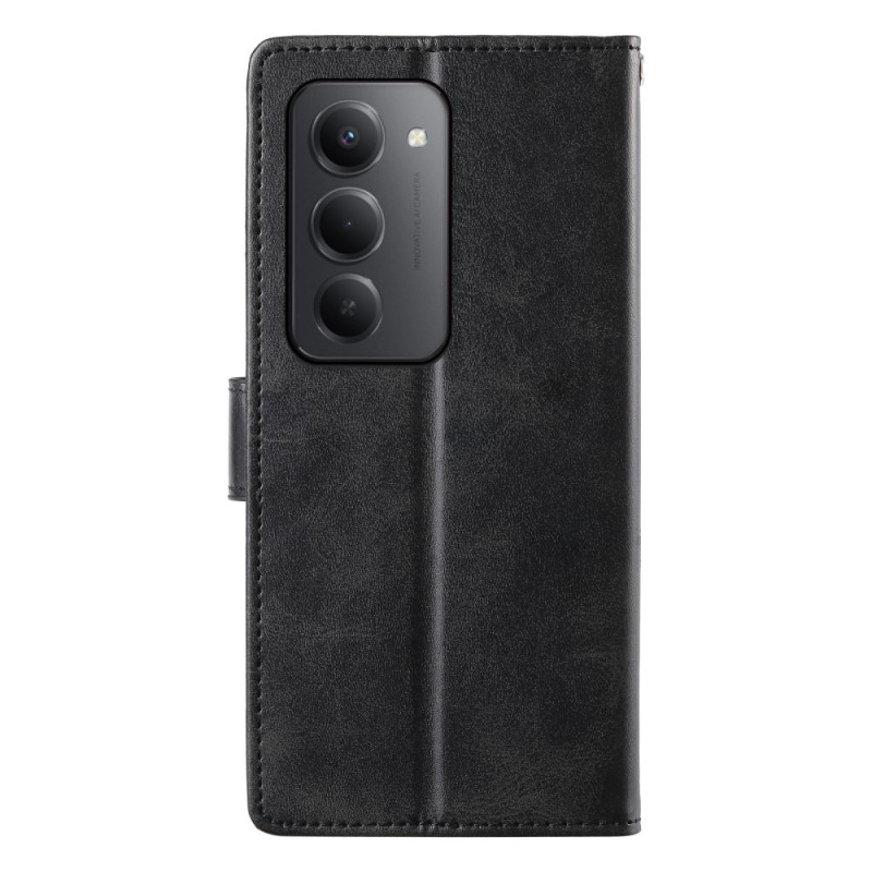 Étui portefeuille élégant pour Xiaomi Redmi 15 4G avec texture grain de veau. Comprend 2 fentes pour cartes, 1 compartiment photo, 1 poche cash, support multi-angles et fermeture magnétique. Protection intégrale avec dragonne incluse.