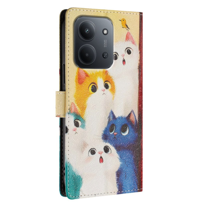 Protégez votre Xiaomi Redmi 15C 5G / 5G avec cet étui portefeuille élégant et fonctionnel. Doté d'un motif de chats colorés, il offre une protection durable, des fentes pour cartes, une fonction support et une dragonne détachable. Alliant style et praticité, cet étui en cuir PU avec coque TPU intérieure assure une protection complète contre les chutes et les rayures.