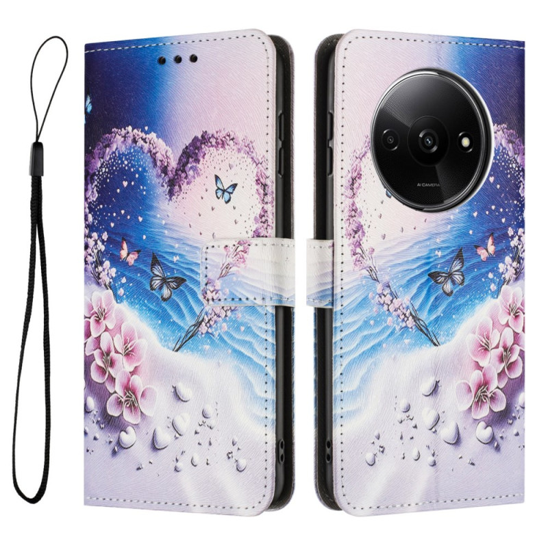 Protégez votre Xiaomi Redmi A3, A3x ou Poco C61 avec style grâce à cet élégant étui portefeuille à motif papillon cœur. Doté de compartiments pour cartes, d'un support pliable et d'une dragonne pratique, il allie fonctionnalité et esthétisme.