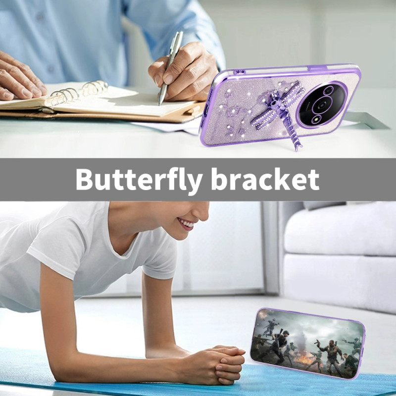 Protégez votre smartphone avec élégance grâce à cette coque scintillante ornée de fleurs éternelles et strass. Son support libellule intégré permet un visionnage mains libres, tandis que les rebords surélevés protègent efficacement votre appareil photo.