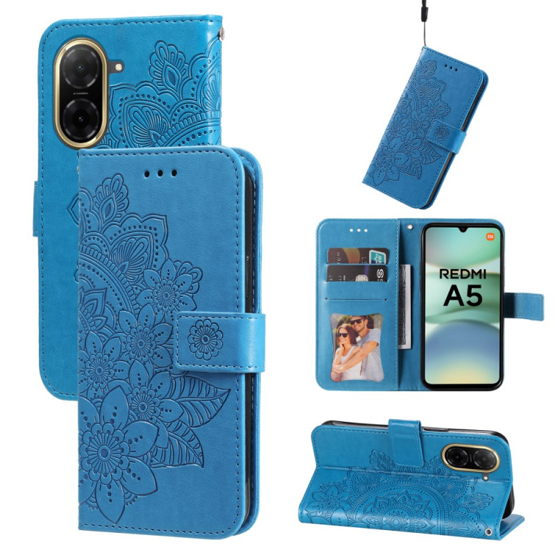 Étui portefeuille élégant en cuir PU avec motif floral pour Xiaomi Redmi A5. Offre une protection double couche, des fentes pour cartes, une fonction support et une sangle pratique.