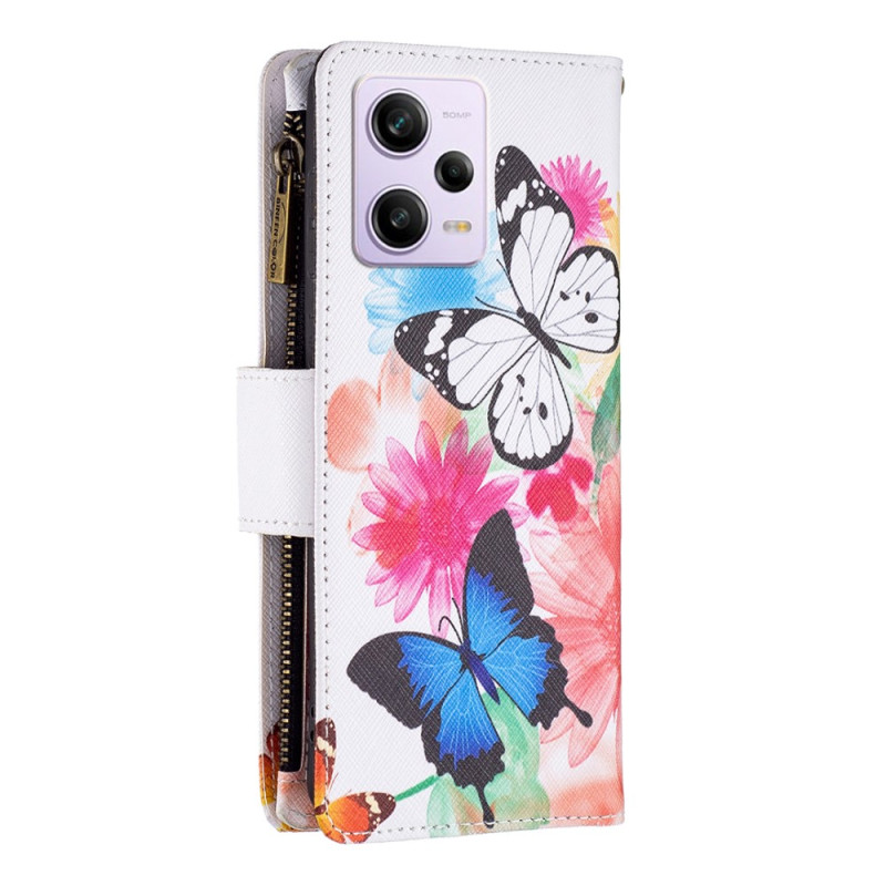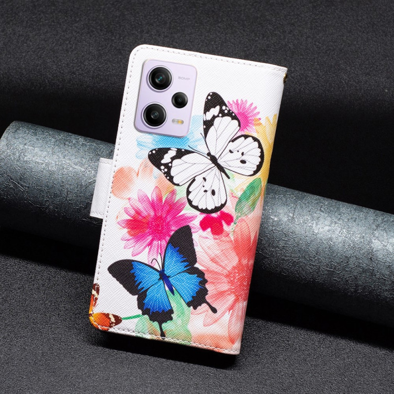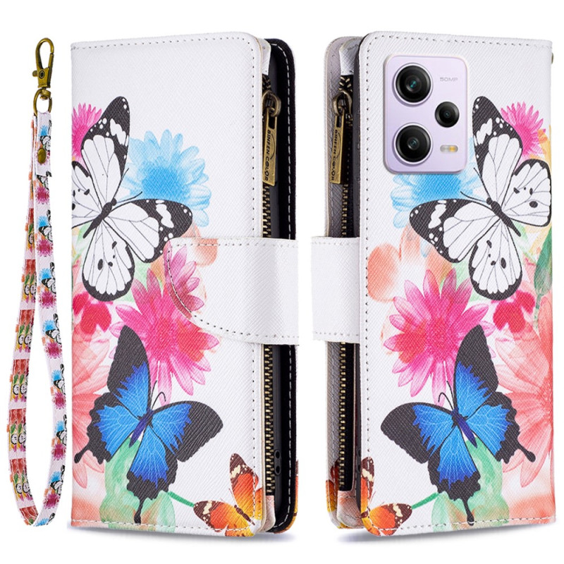 La housse avec porte-monnaie Papillons sécurise et propose des options optimisées pour le Xiaomi Redmi Note 12 Pro 5G/Poco X5 Pro 5G.