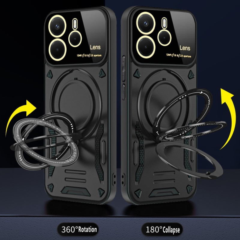 Découvrez notre coque innovante pour Xiaomi Redmi Note 14 4G. Dotée d'un support rotatif magnétique intégré, elle offre une protection double couche en PC et TPU.