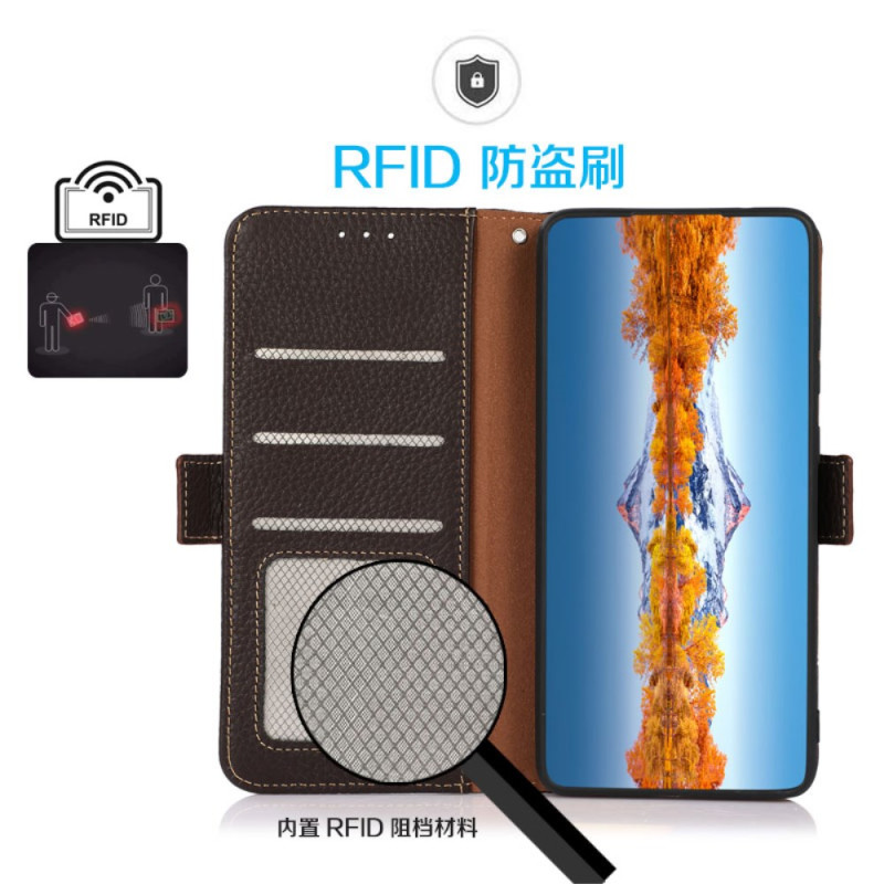 Découvrez notre étui en cuir véritable pour Xiaomi Redmi Note 14 5G. Élégant et pratique, il offre une protection RFID, des emplacements pour cartes et billets, et se transforme en support.