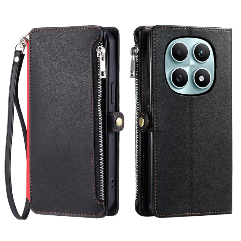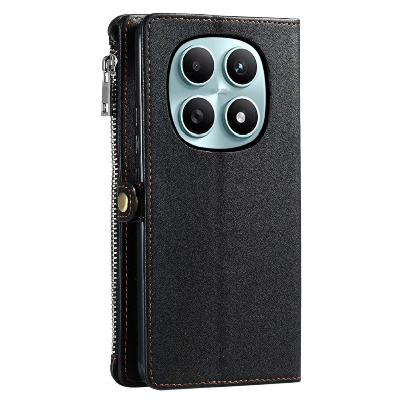 Étui portefeuille élégant pour Xiaomi Redmi Note 15 4G combinant protection intégrale et fonctionnalité. Doté de 8 emplacements pour cartes, d'une poche zippée et d'une fermeture magnétique sécurisée. Inclut une dragonne pratique.