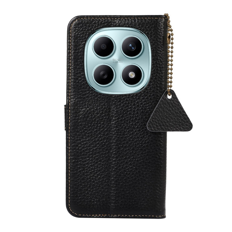 Protégez votre Xiaomi Redmi Note 15 5G / Poco M8 5G avec cet étui en cuir de vache véritable à texture litchi. Équipé de la technologie de blocage RFID, il offre 2 emplacements pour cartes, 1 poche photo et 1 compartiment pour espèces. Support mains libres intégré.