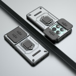 Protégez votre smartphone avec cette coque robuste en PC et TPU. Dotée d'une béquille rotative intégrée et d'un cache objectif coulissant, elle offre une protection complète contre les chocs et les rayures tout en permettant un visionnage mains libres.