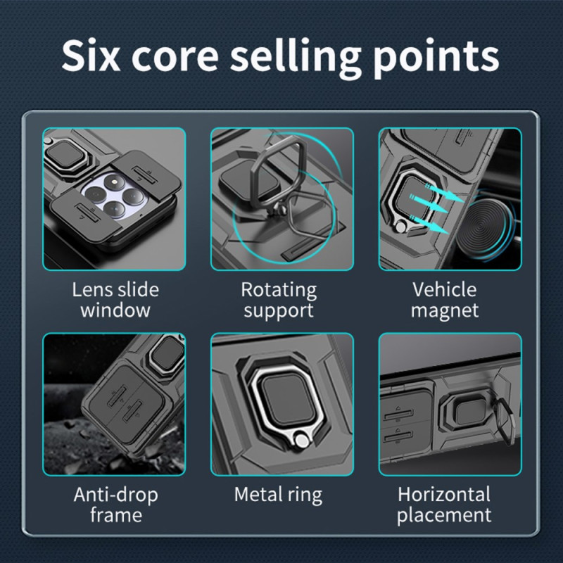 Protégez votre Xiaomi Redmi Note 15 Pro 5G avec cette coque robuste dotée d'un cache objectif coulissant et d'une béquille rotative. Fabriquée en matériaux résistants, elle offre une protection optimale contre les chocs et les rayures tout en permettant un accès complet à toutes les fonctionnalités de votre téléphone.