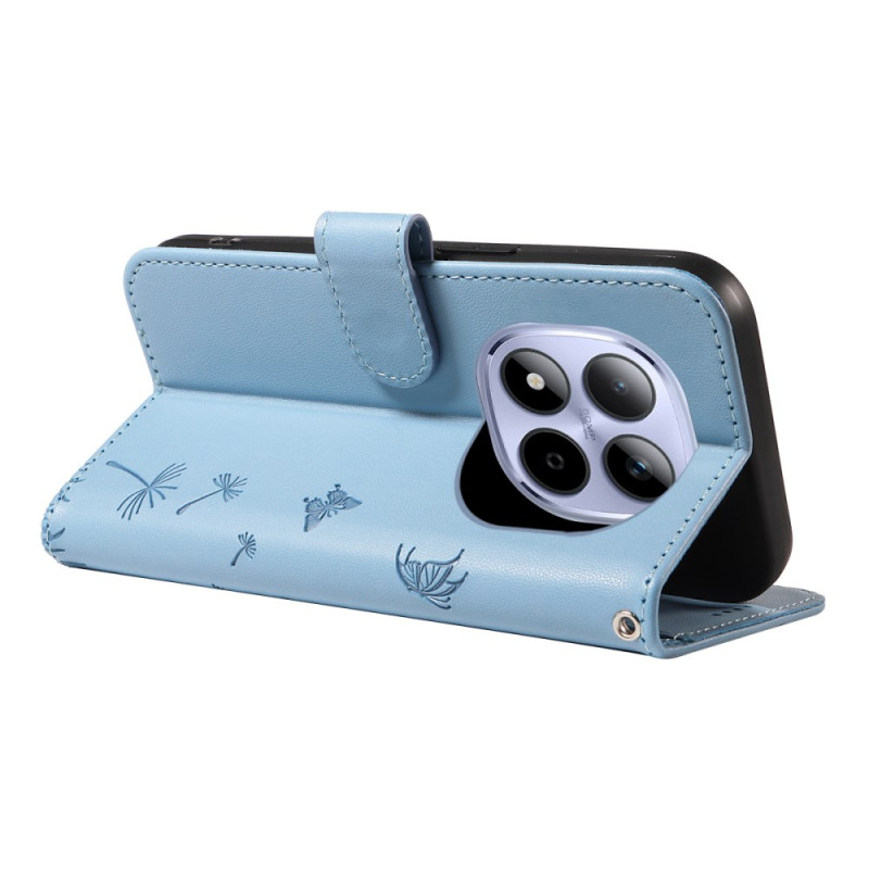 Étui portefeuille élégant pour Xiaomi Redmi Note 15 Pro 5G avec motif pissenlit raffiné. Comprend 3 emplacements pour cartes, une poche latérale, une fonction support et une dragonne pratique. Protection robuste en cuir PU premium et coque TPU.
