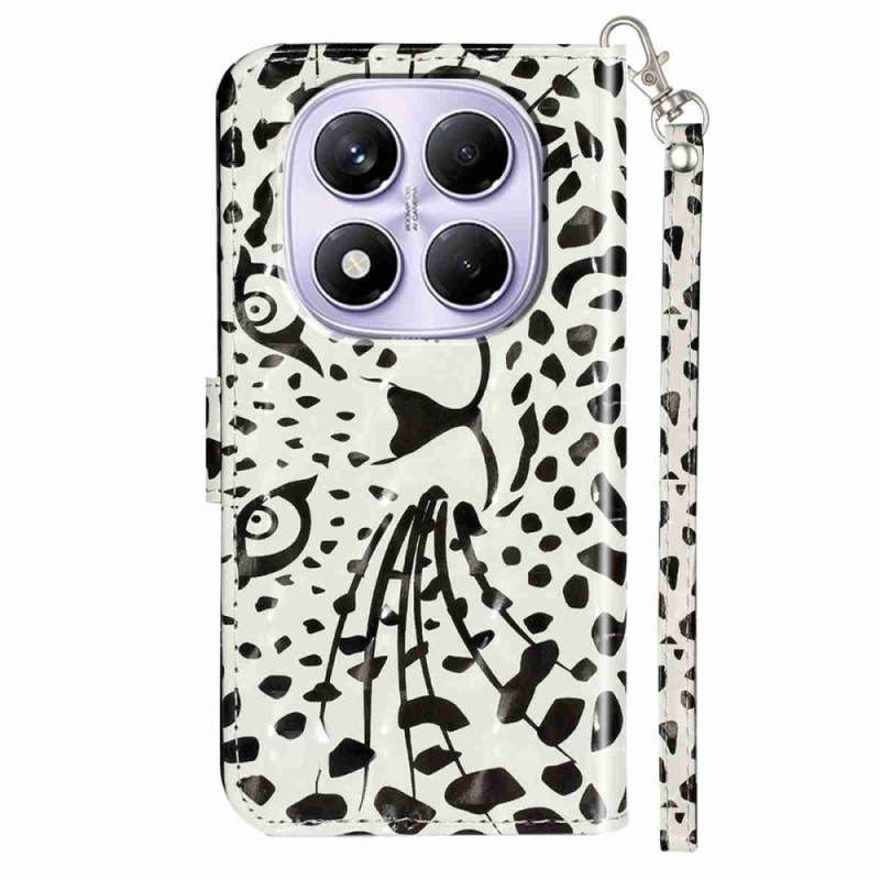 Housse Xiaomi Redmi Note 15 Pro 5G Tête de Léopard à Lanière