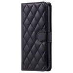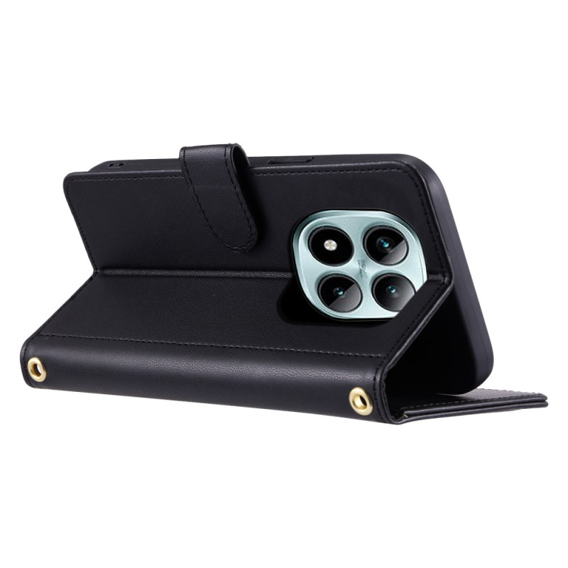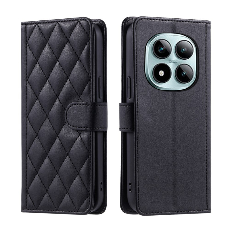 Étui portefeuille élégant en cuir PU avec motif losange pour Xiaomi Redmi Note 15 Pro 5G. Comprend bandoulière réglable, dragonne, porte-cartes et fonction support. Protection intégrale contre les chocs et rayures avec accès facile à toutes les fonctions.