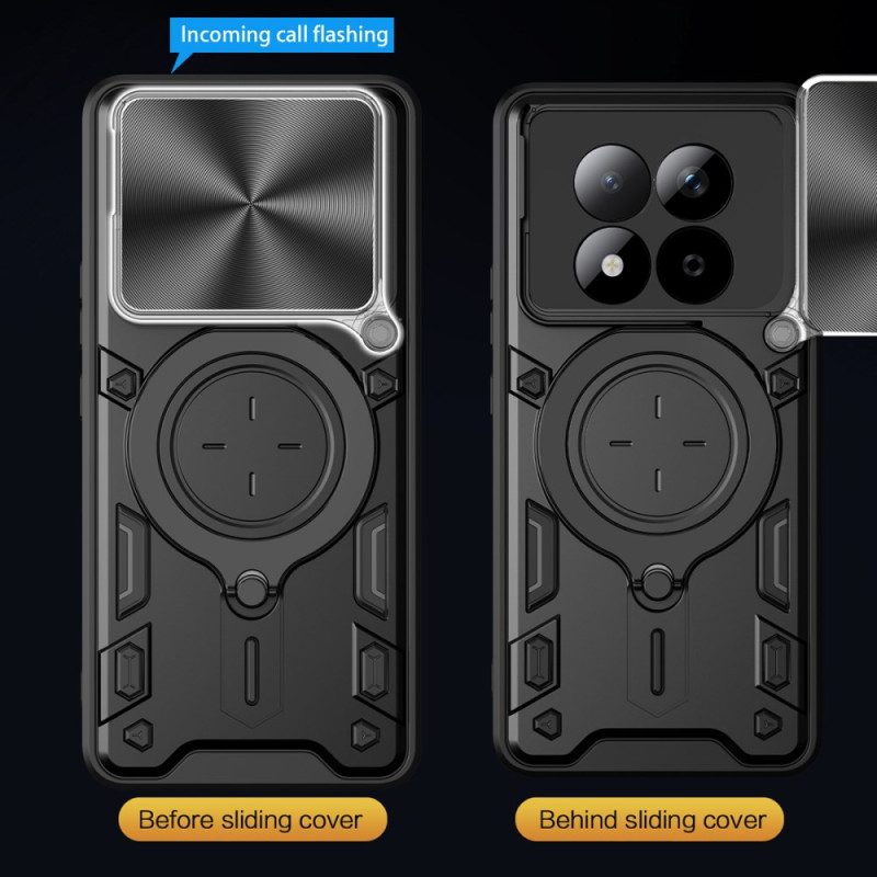 Protégez votre Xiaomi Redmi Note 15 Pro 5G avec cette coque robuste dotée d'une béquille rotative 360°, d'un support magnétique pour voiture et d'un cache coulissant pour objectifs. Design industriel moderne alliant protection maximale et praticité au quotidien.