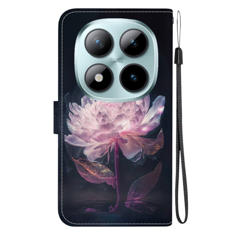 Protégez votre Xiaomi Redmi Note 15 Pro Plus 5G / Poco M8 Pro 5G avec élégance grâce à cet étui portefeuille à rabat orné d'un motif pivoine violette. Pratique et raffiné, il combine protection anti-chute, fonction support, emplacements pour cartes et dragonne...
