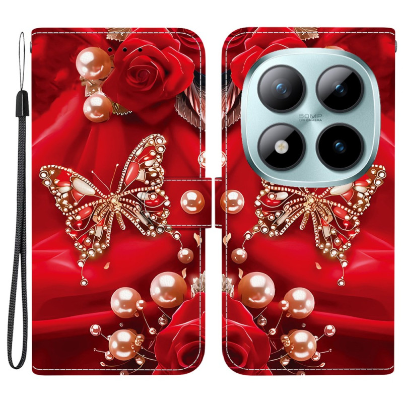 Élégant étui portefeuille avec support pliable et dragonne amovible pour Xiaomi Redmi Note 15 Pro Plus 5G / Poco M8 Pro 5G. Design raffiné papillon nacré rose. Fermeture magnétique sécurisée, 2 emplacements cartes et compartiment espèces intégrés.
