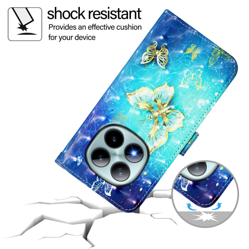Protégez votre Xiaomi Redmi Note 15 Pro Plus 5G / Poco M8 Pro 5G avec élégance grâce à cet étui portefeuille orné de papillons dorés. Doté de 3 emplacements pour cartes, d'une poche pour billets et d'un support ajustable, cet étui combine style et fonctionnalité..