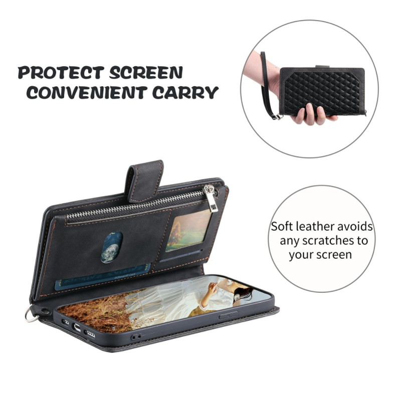 Étui portefeuille élégant en cuir PU avec motif losange cousu pour Xiaomi Redmi Note 15 Pro Plus 5G. Doté de multiples emplacements pour cartes, d'une poche zippée et d'une fonction support. Fermeture magnétique sécurisée et dragonne pratique incluse.